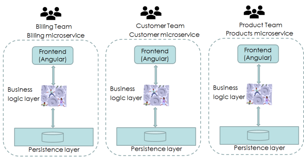 - Einige Features lassen sich nun autonom realisieren, weil die Daten zumindest für Lesezugriffe jedem Microservice zur Verfügung stehen könnten. Damit werden Abhängigkeiten zu anderen Teams minimiert und es wird weniger Abstimmungsbedarf benötigt.