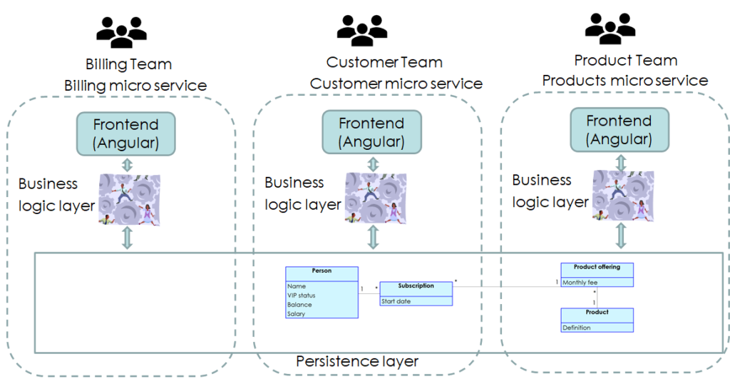 Microservices strukturiert nach fachlichen Funktionen mit einem gemeinsamen Persistenzlayer