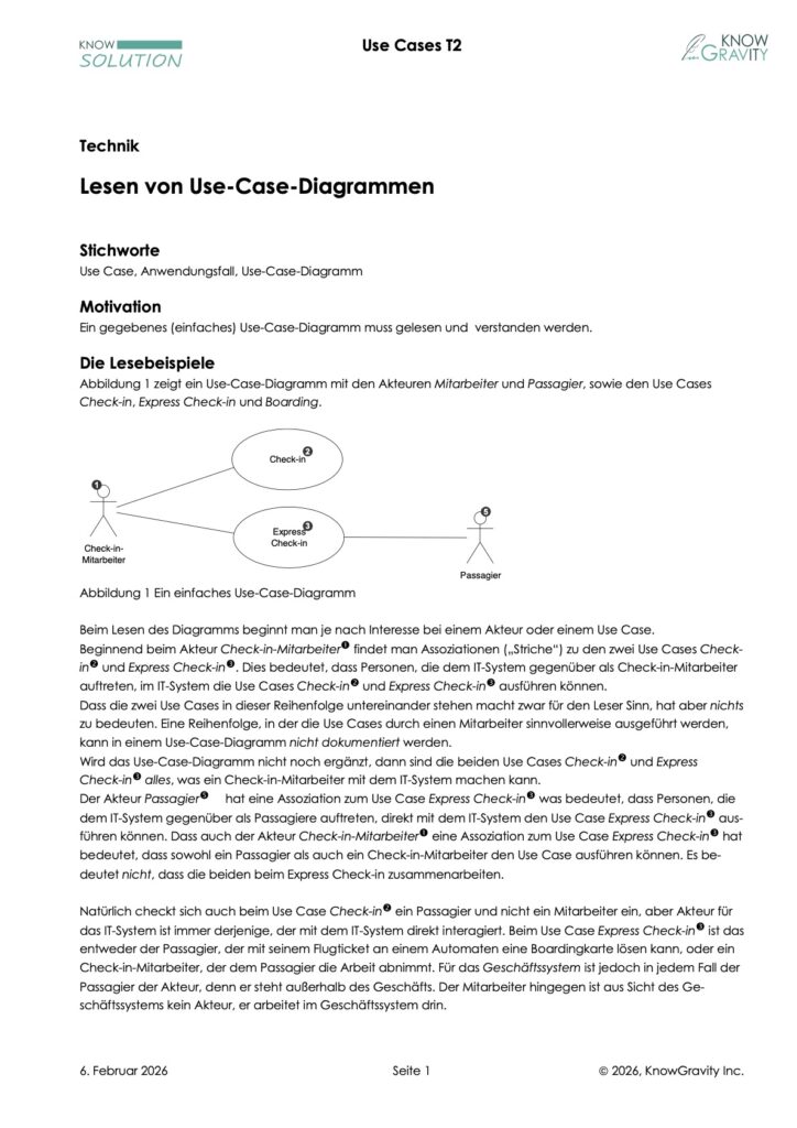 Eine Übersetzungshilfe für Laien, um einfache Use-Case-Diagramme zu lesen, auf Deutsch zu übersetzten und verstehen zu können.